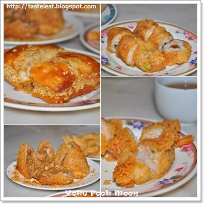 Fried Prawn Roll(Top), Pork Dumpling(Bottom Left) and Prawn Dumpling(Bottom Right). Fried Prawn Roll is crispy with a lot of fresh prawn deep fried to perfection.