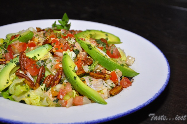 topped with fresh sliced avocado. The assorted vegetable is crunchy together with spiced pecans making it great in texture and flavor.