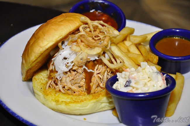 BBQ Pulled Chicken Sandwich RM 28.00, hand-pulled in-house smoked chickens, which is tender and juicy. Served on a toasted Ciabatta bun topped with Hickory Bar-B-Que sauce and creamy coleslaw. Sideline served with ranch beans, cole slaw and seasoned fries. If you try pull pork burger before then you should know how this pull chicken about, best thing is BBQ Pull Chicken Sandwich has even better texture which is much more soft and juicy.