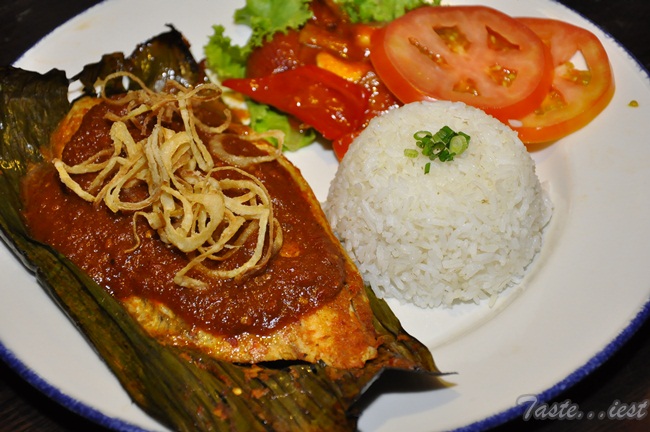 Ferringhi Ikan Bakar RM30.00, baked Seabass filet with Portuguese spicy sauce wrapped with banana leaf. Served with acar rampai and steamed rice. Seabass filet is grilled with banana leaf top with extremely spicy sauce, I am surprise by the level of spiciness as I thought they would make it less spicy to cater foreigner taste bud but we are wrong as it is so spicy that spicy lover like us also surrender. So for spicy lover, go challenge yourself a plate of Ferringhi Ikan Bakar.
