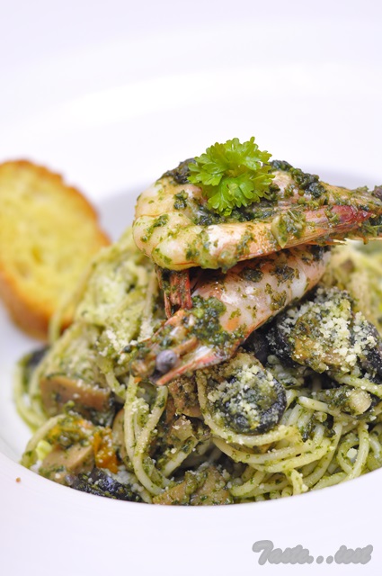 Pasta with Pesto Sauce RM17.90, although this shop emphasize on dessert but they are doing well on their main dish as well such as this Pasta which is al-dente with rich flavor Pesto sauce and two big prawns.