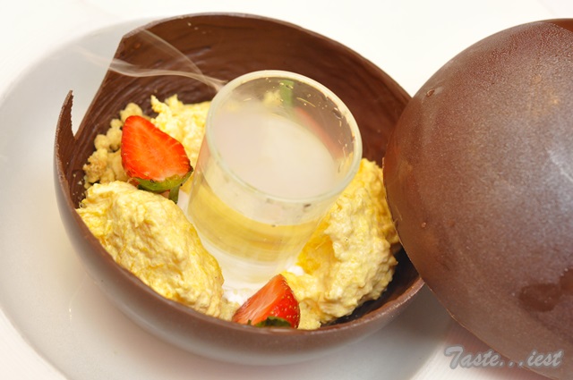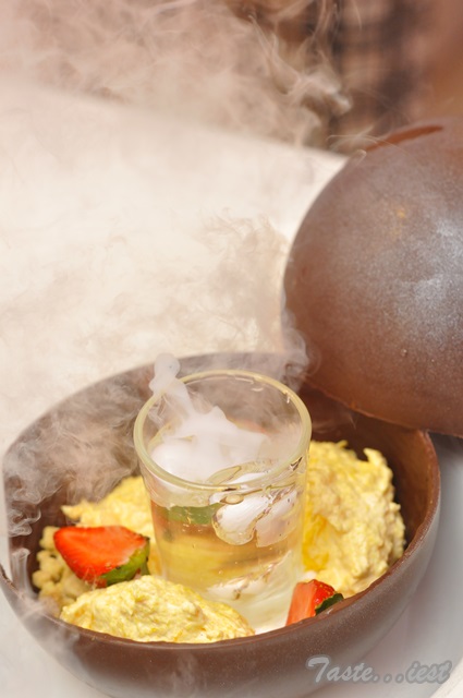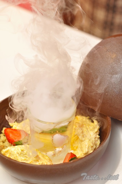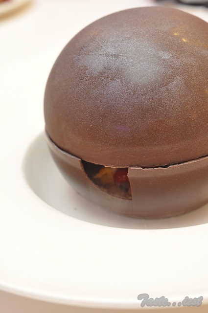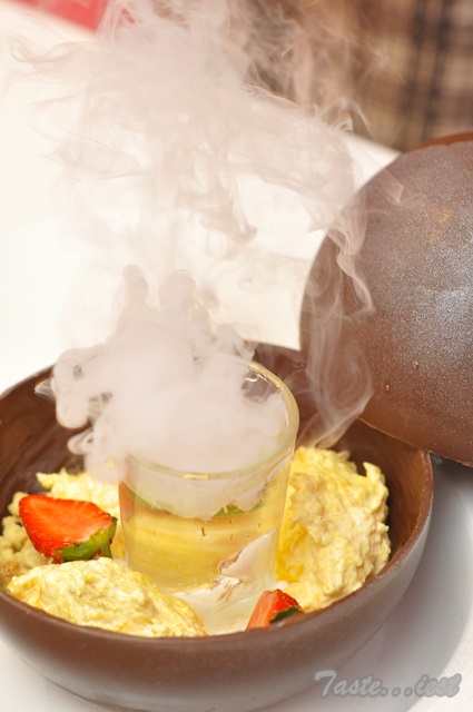 Legendary Luminous Pearl RM29.90. Happy Halloween. Special menu roll out in conjunction with Halloween celebration, you have to call for reservation as it take time to prepare. The black dome is actually chocolate made while fill inside is fresh pumpkins with custard and strawberries, in the middle is a cup of water with dry ice for presentation ONLY.