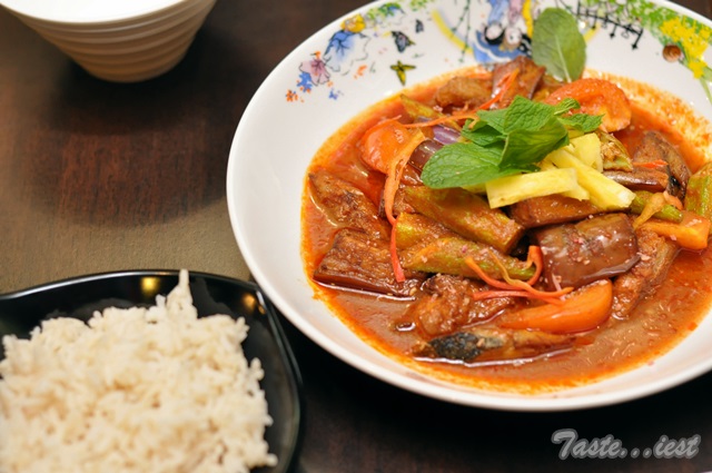 阿参咖喱餐 Assam Curry Meal RM10.90, curry cook with egg plant, tomato, lady finger, mushroom with fish like fritter taste really good, it taste spicy and sour which exactly the same flavor as my mum cook curry fish. It served with healthy rice as well.