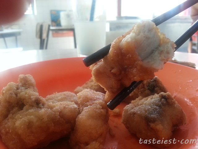 Big chunks of fish meat deep fried to golden color that still juicy inside, fish is so sweet and fresh while the coating powder has slightly salty flavor making it so delicious.