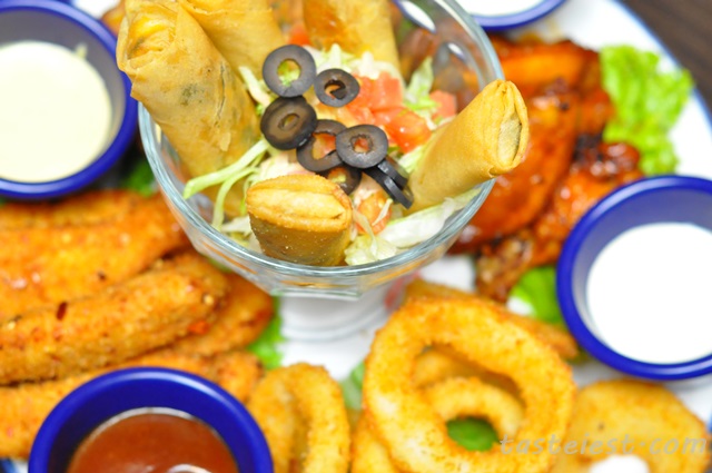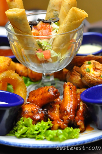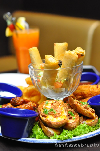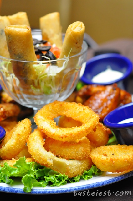 Hard Rock Cafe served us with Jumbo Combo, a big platter that good enough to feed 5 of us hungry ghost. The platter consist of Santa Fe Spring Rolls, Hickory-Smoked Chicken Wings, Onion Rings, Potato Skins and Tupelo Chicken Tenders, it came with 4 different type of sauce as well.