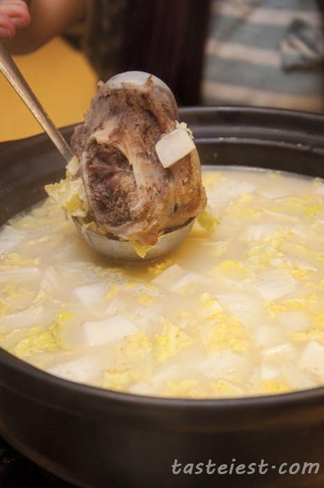 Whole Bone Double Stewed Soup, one whole big bone are use to cook the soup which must be cook for many hours to generate the bone sweetness.