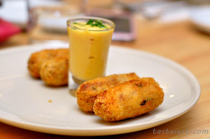 Duck Croquettes with Laksa Aioli RM10, Aiolo is a type of sauce made from garlic, olive oil, lemon juice…etc which taste sourish and rich, dipping the duck croquettes with the special made sauce making it taste good.