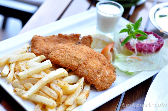 Fish and Chip, big portion of deep fried fish served with french fries and fresh vegetable. The deep fried fish was prepared well, the batter was cooked all the way though and fish meat is juicy.