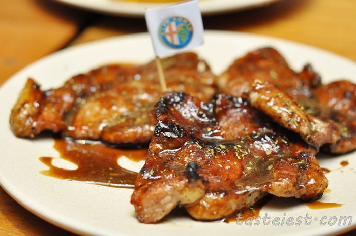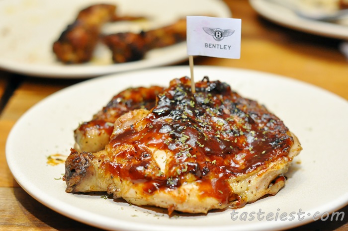 Grilled Chicken Thigh with black pepper and barbecue sauce, debone chicken grilled to perfection then top with black pepper and barbecue sauce.