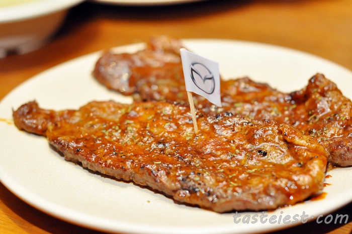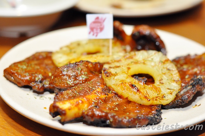 Porkloin Chop, grilled with homemade sweet honey sauce. Personally the sweet sauce apply on the pork is way too much, the sweet sauce overpower the pork flavor and too sweet for my liking.