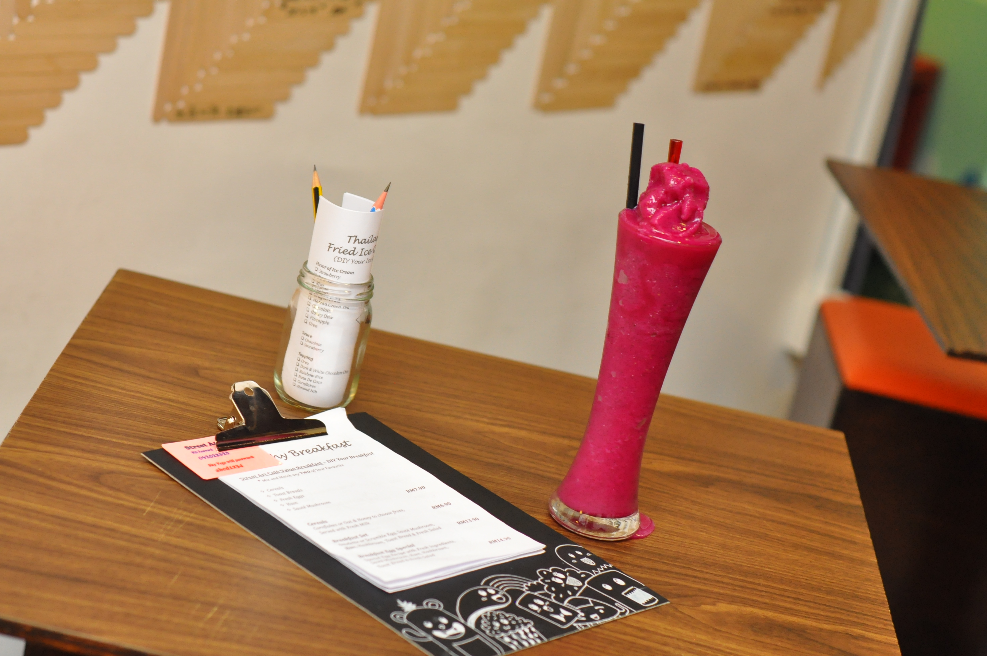 Street Art Cafe located at Lebuh Cina Penang, just few street away from Guan Yin Temple, after praying at Guan Yin Temple you may walk across the street and dine at Street Art Cafe and enjoy a cup of Thailand Fried Ice Cream.