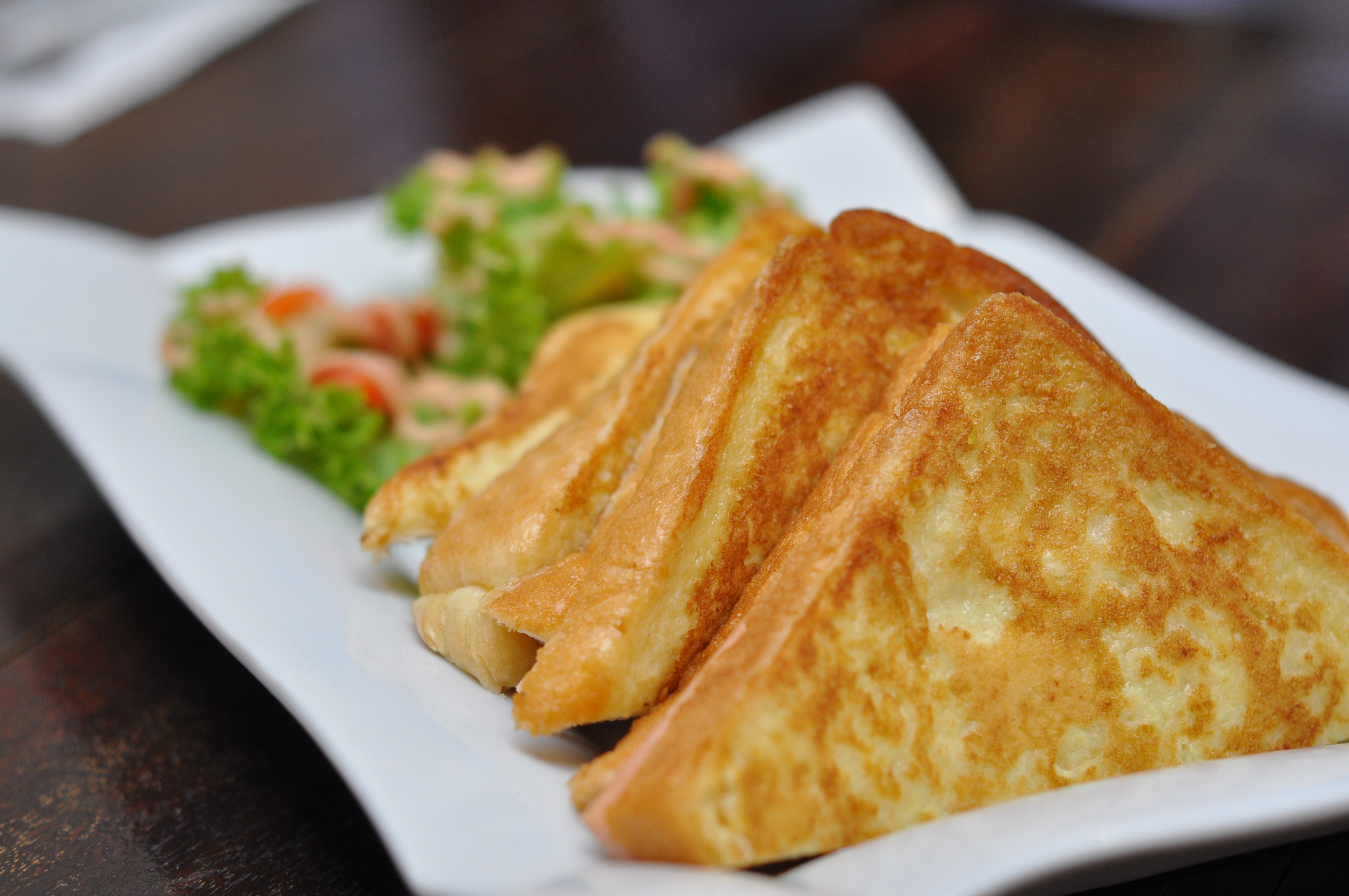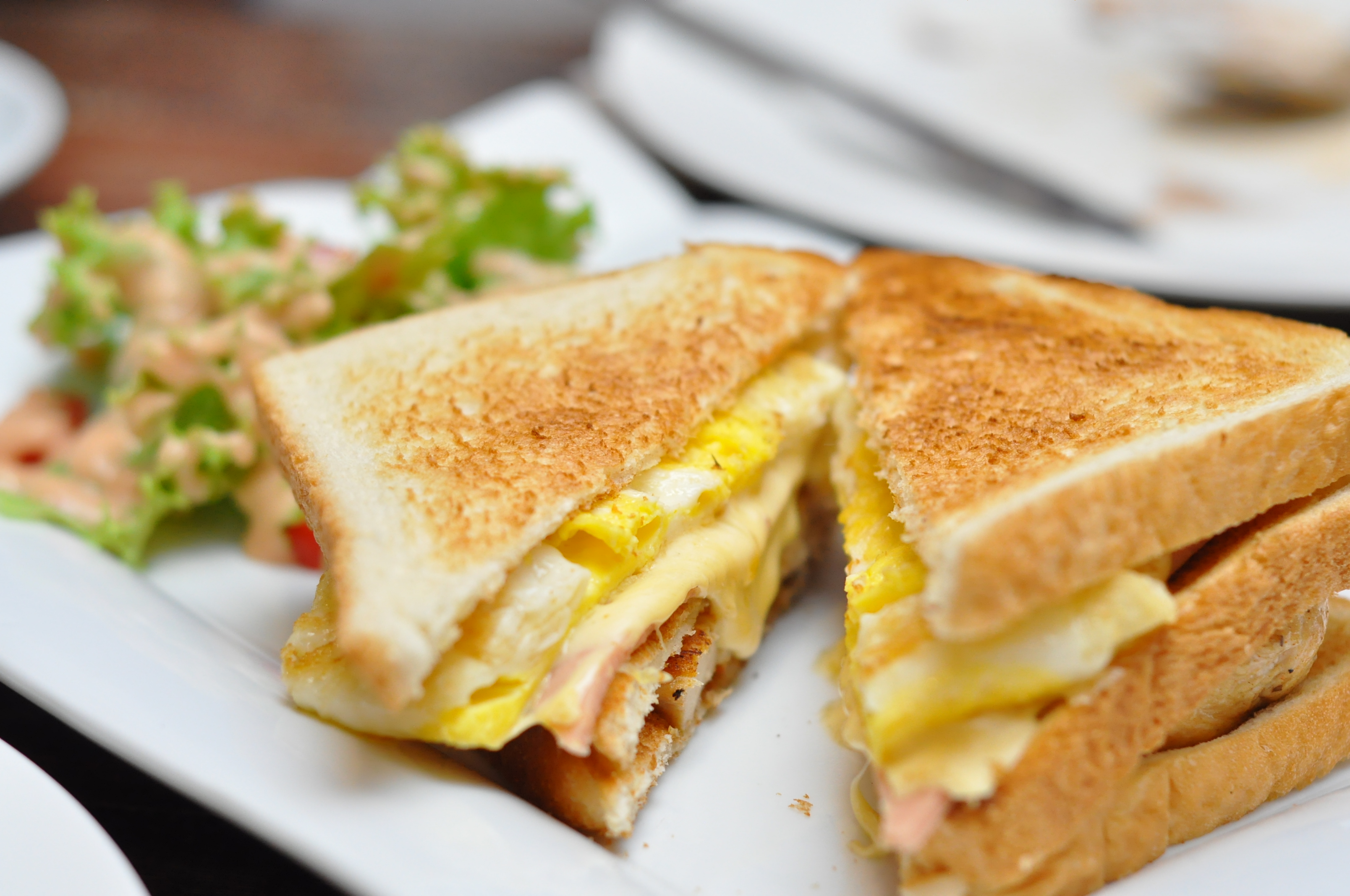 Club Sandwich RM13.90, toasted bread sandwich with egg, cheese and ham served with fresh vegetable salad.