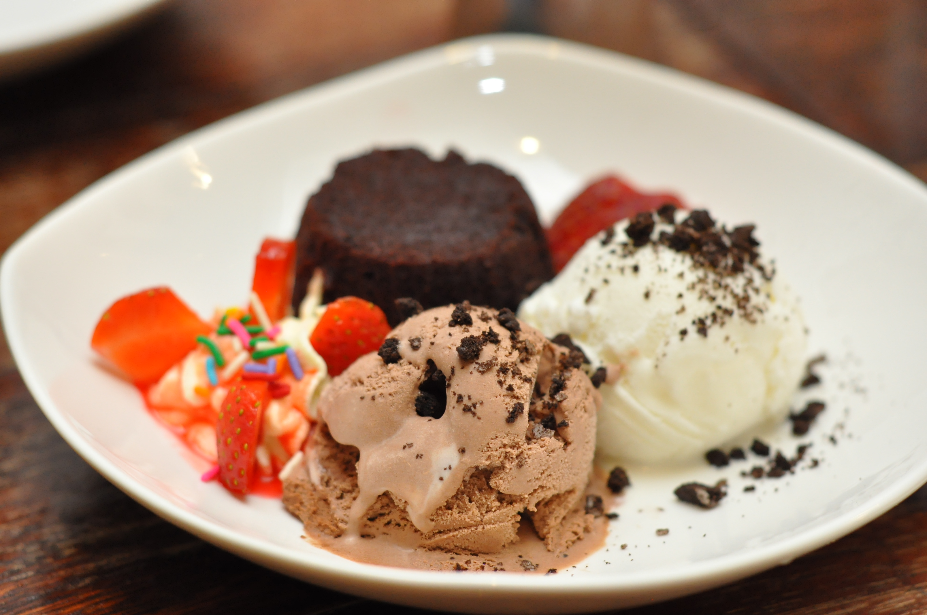 Chocolate Lava RM6.90 served with two scoop of ice cream and strawberry. The lava is not melting from inside out but it has pretty strong chocolate flavor.