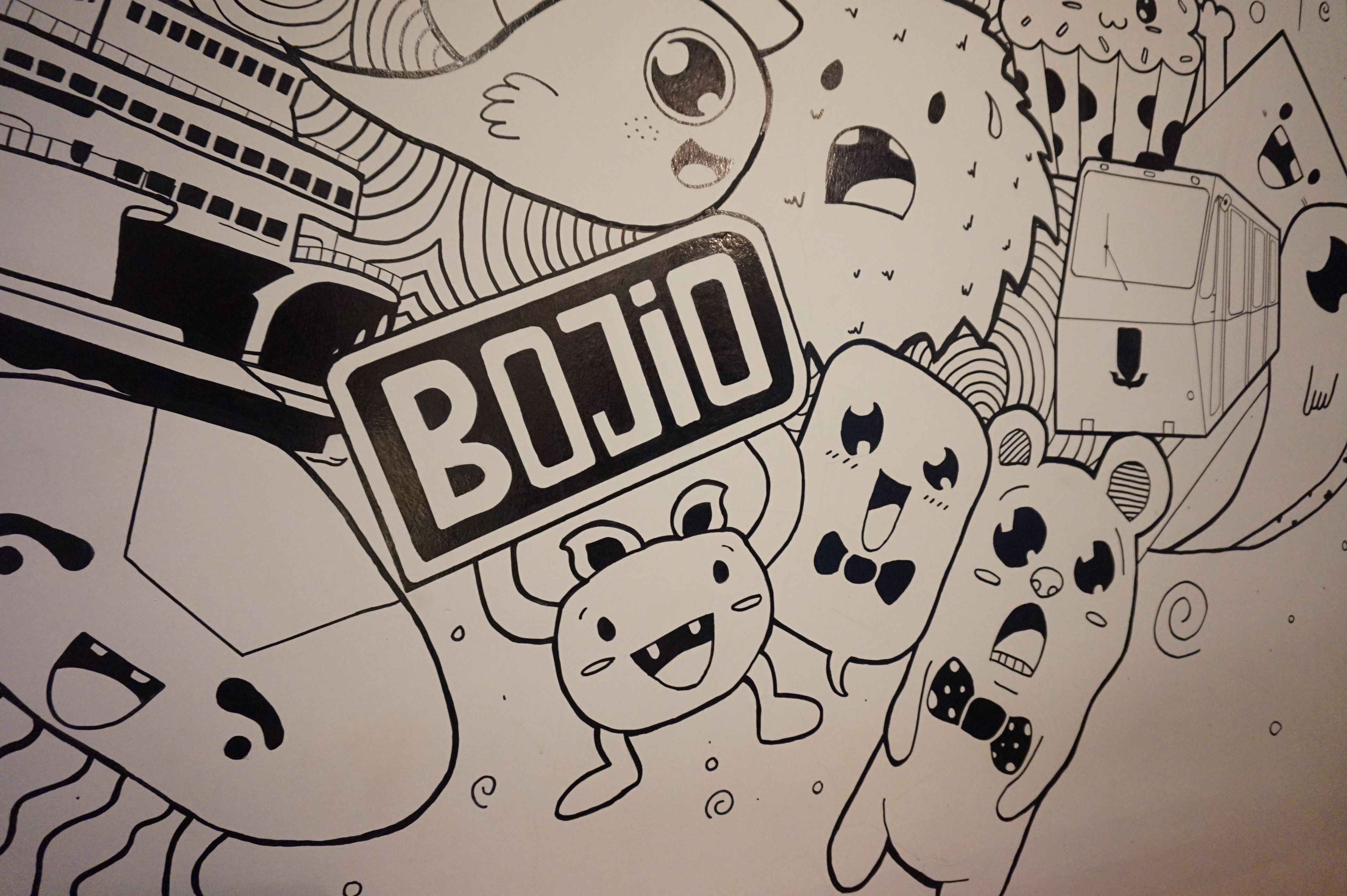 The restaurant has very nice “Graffiti”. “BOJIO”
