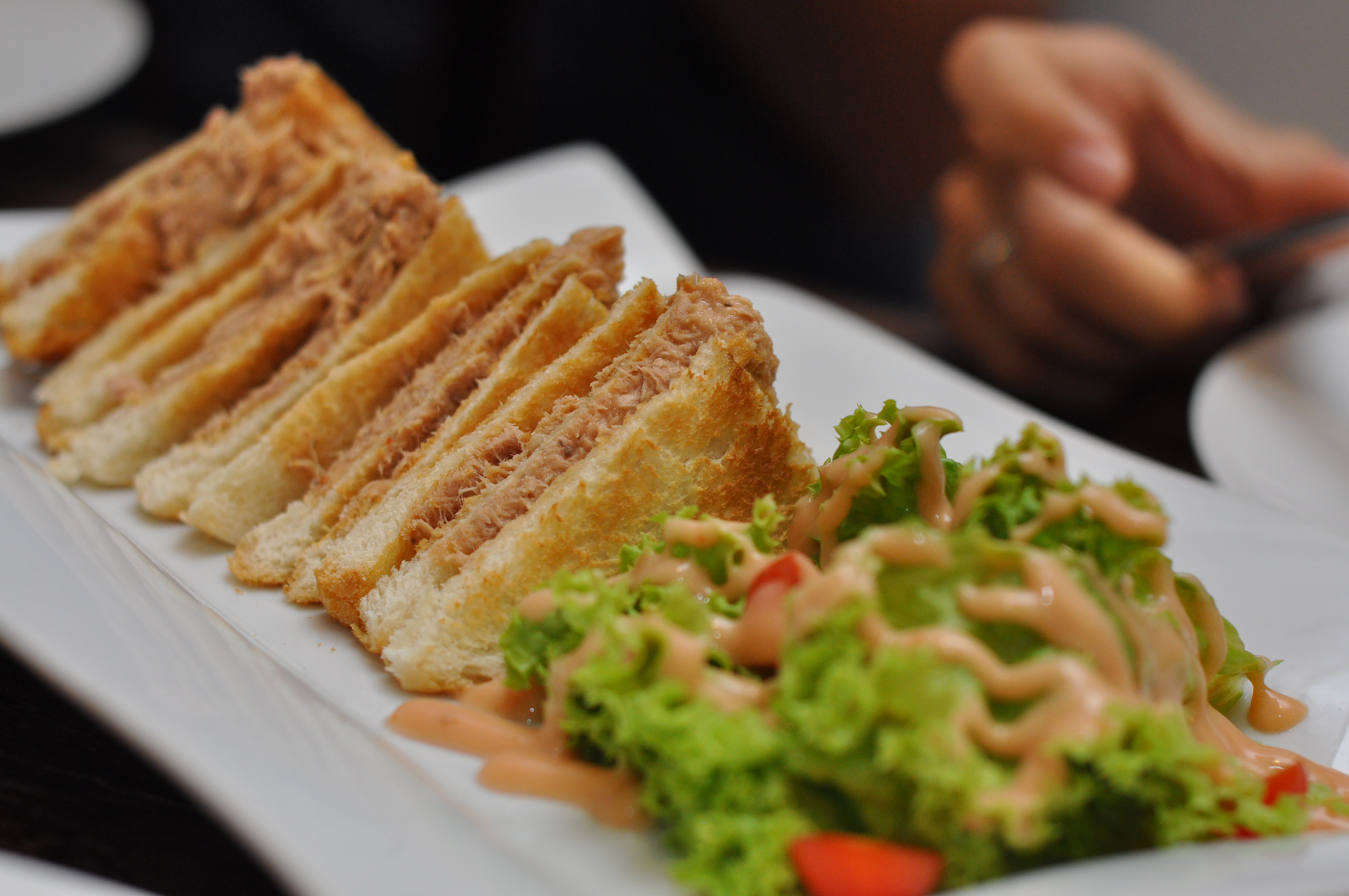Tuna Sandwich RM10.90, mix of tuna with seasoning as filling for sandwich, plenty of tuna fill between the toasted bread served with fresh vegetable salad.