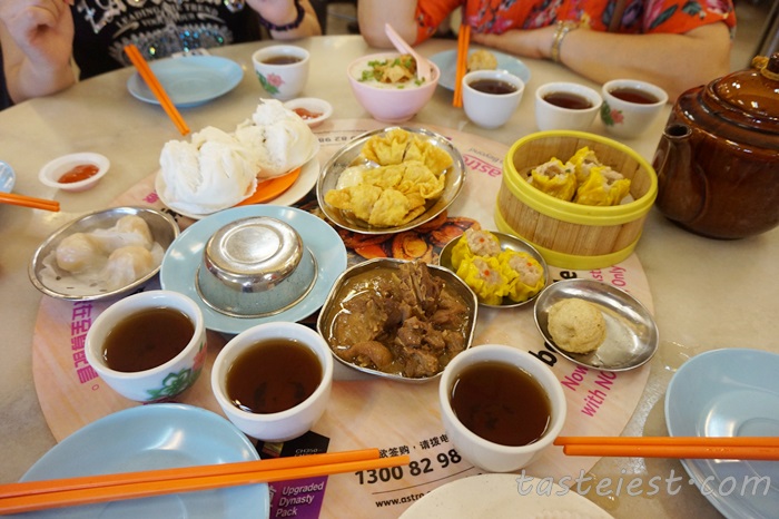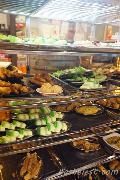 Assorted dim sum for selection, people are queuing to get their favorite dim sum. Dim Sum are served hot and they keep sending out from kitchen while the deep fried item are store in heated glass pushing cart and customer can take easily.