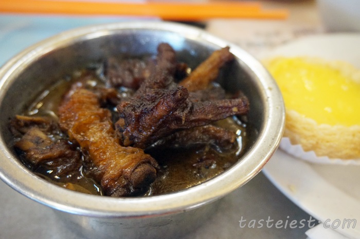 Braised Chicken Feet, instead of typical red sauce they use black sauce that normally you can find in wantan mee shop. It is deep fried the braised, taste normal.