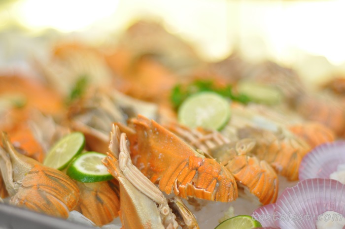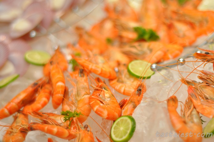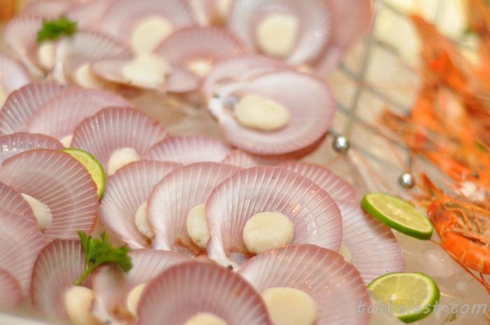 While on the seafood counter there is crab, clayfish, scallop and prawn which are boiled and plated on ice.