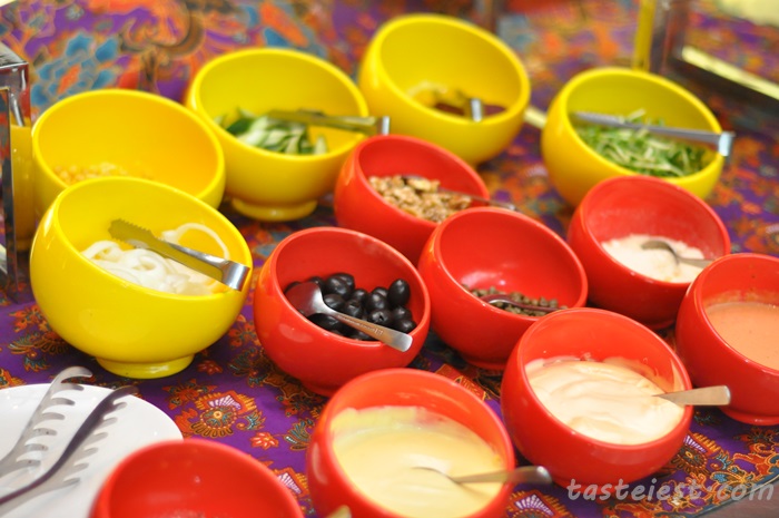 Over to Salad counter there is assorted fresh vegetable with various dressing.