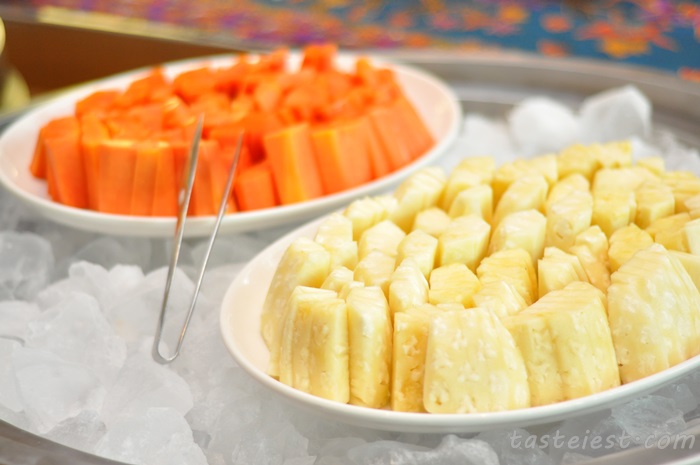Fresh fruits such as Honeydew, Papaya, Pineapple, Watermelon, Apple….etc, so many choices for fresh fruits.