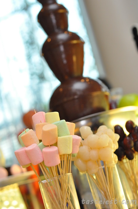 Chocolate Fondue with masmaro, grape, longan…etc.