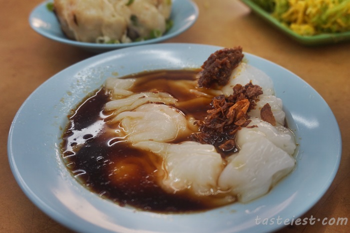 Chee Cheong Fun is extremely smooth texture with big prawn inside.