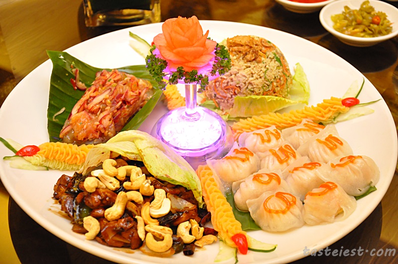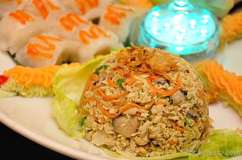 Fried Rice with Yam wrapped in Lotus Leaves, last but not least the fried rice that has great amount of Chinese sausage and dried shrimp in it that make a good flavor. Add on with the provided chili sauce making it taste even better.