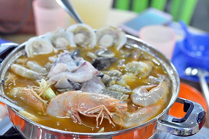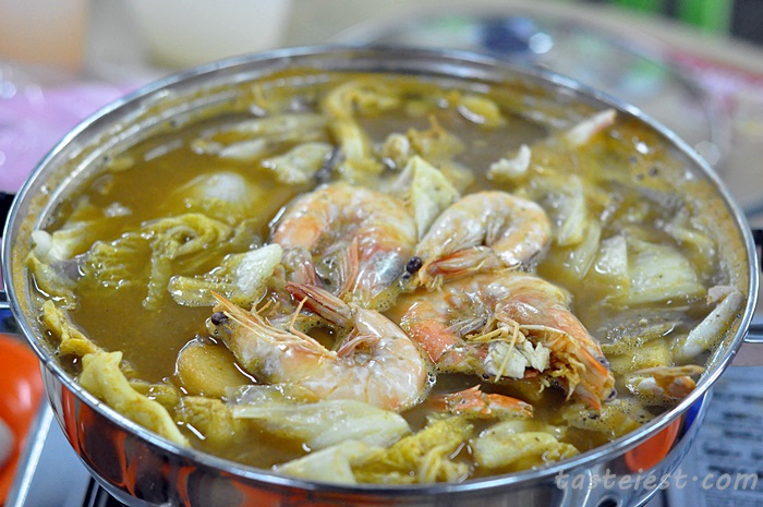 OMG, look at the super big prawn and various seafood that being added into the steamboat pot.