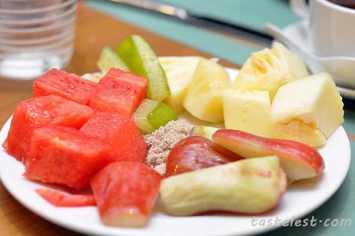Well, since we input so much calories and cholesterol, it time to put in some fiber. Myself finish one big bowl of fresh fruits.