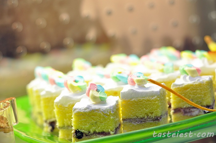 Dessert counter are nicely decorated and fill up with colorful dessert, hot stone table on the right side for hot dessert and drink while on the left are filled with fruits and assorted desserts.