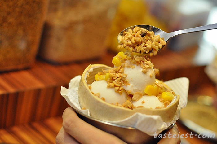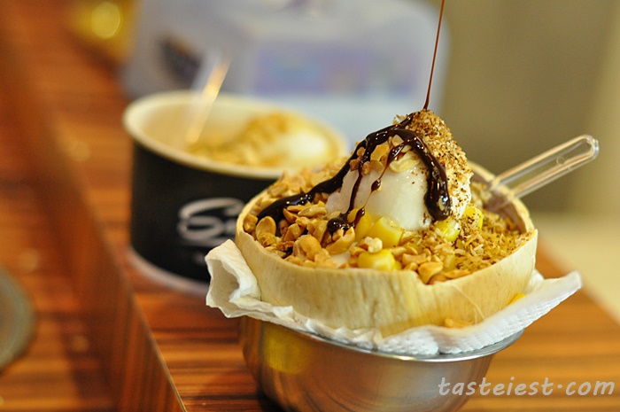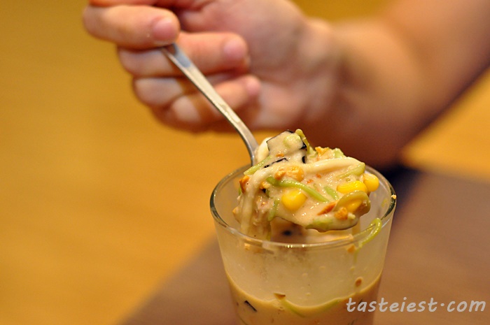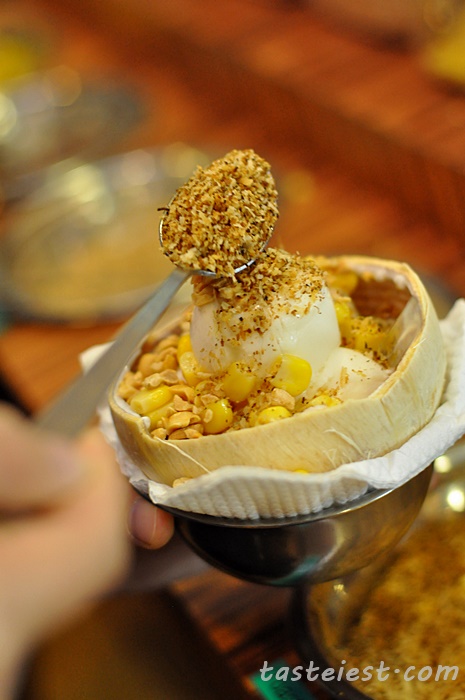 Signature Coconut Ice Cream RM10.50 served with 4 scoops of premium coconut ice cream served on fresh coconut husk with fresh strips. 3 different type of topping to be add on, we choose to have Corn, Peanuts and Toasted Coconuts (Actually we accidentally put extra Hersey Chocolate…ops..sorry!). We highly recommended Toasted Coconut and Peanuts, both of this topping is a must as it can bring out the coconut original flavor while Chocolate is a big NoNo as it overpower the coconut flavor.