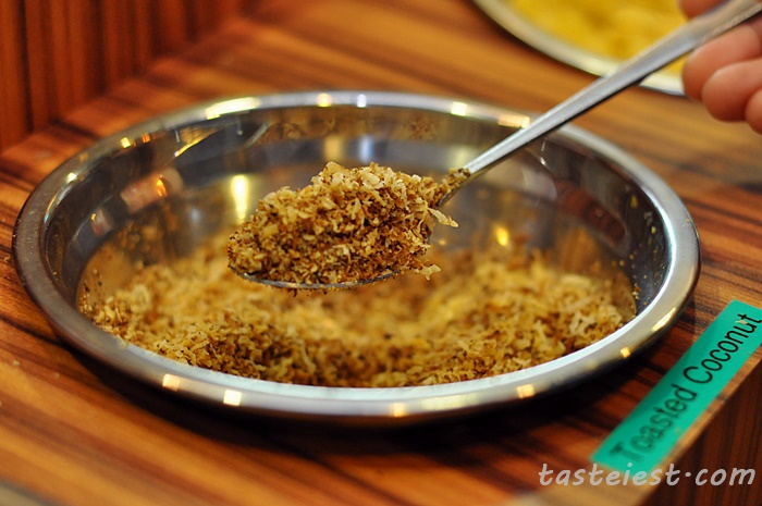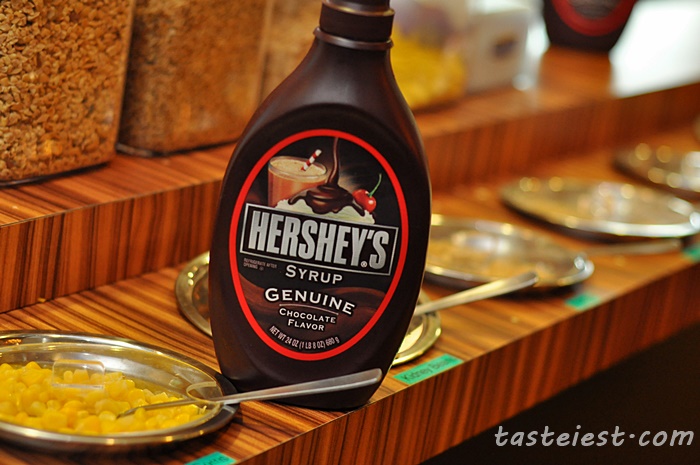 Assorted topping available such as Kidney Bean, Corn, Cornflake, Toasted Coconut, Hersey Chocolate, Peanuts and Nestum Cereal. Self service on topping which mean you can add as much as you want(Signature and Sundae Cup 3 topping, Cup 1 topping).