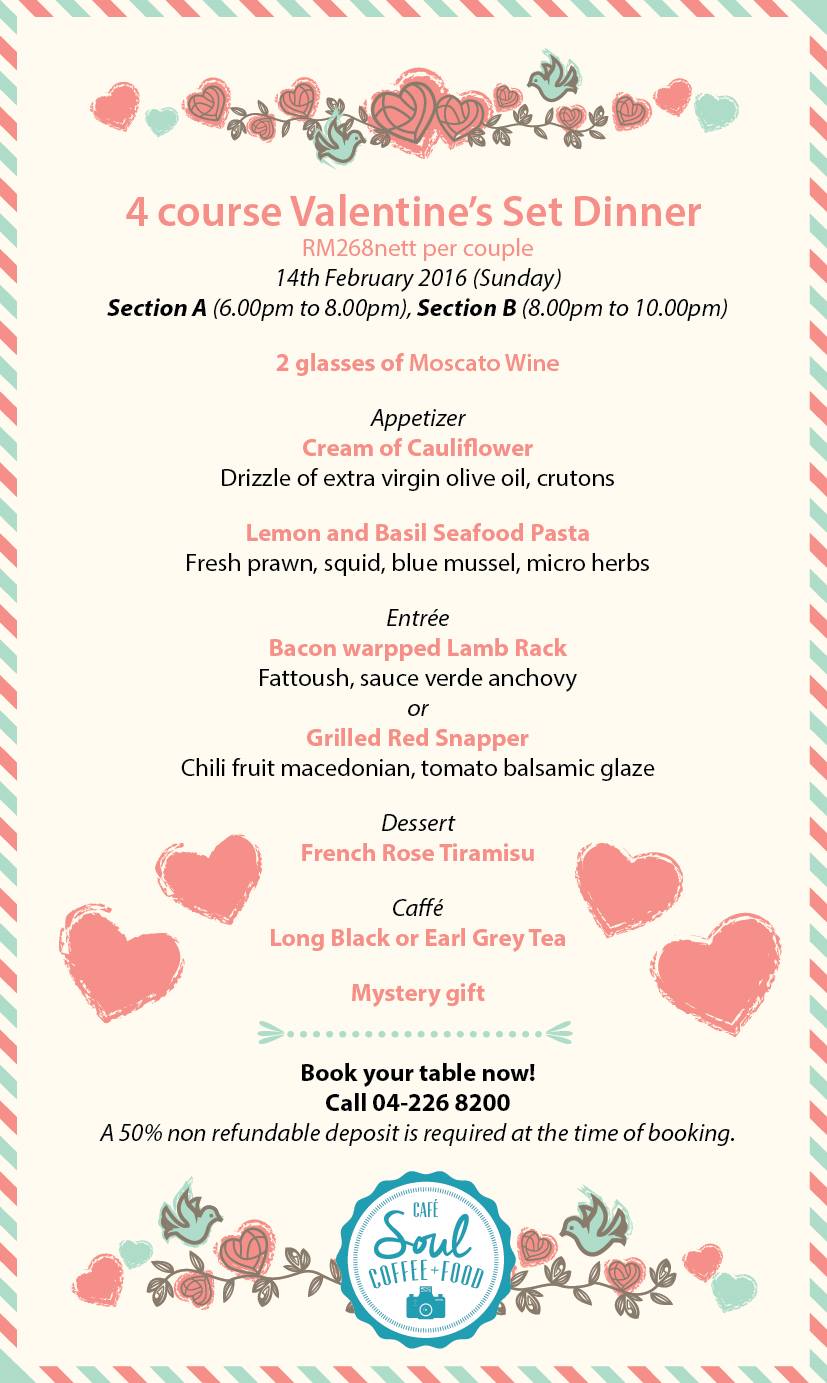 Soul Cafe Valentine Menu 2016