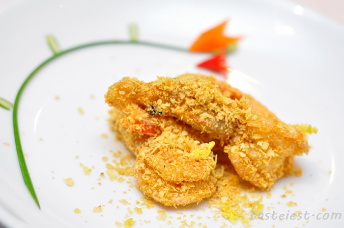 Deep Fried Prawn with Nestum, fresh big prawn are nicely coated with a layer of Nestum then deep frid to perfection, it has strong Nestum fragrance with milk butter flavor in it.