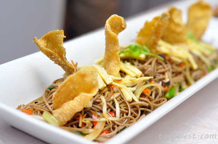Yaki Udon served with deep fried fish skin.