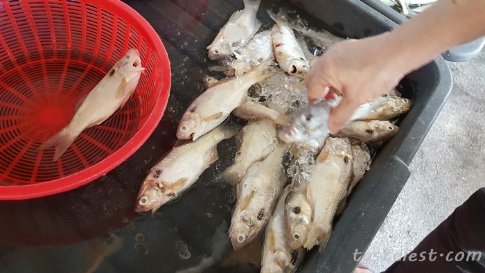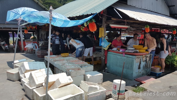 Fish market behind restaurant have fresh seafood for sell and you can buy here and send to restaurant for cooking. There is 5 stall that selling seafood.