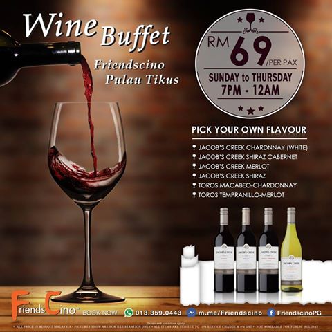Enjoy a night of free flow wine for just RM69/pax, 6 different wine up for selection and you can enjoy from 7pm to 12am on Sunday to Thursday.