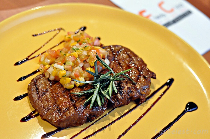 Australian Striploin Meltique Beef 200GM RM60, fine grade of Australian beef grilled to perfection served with mince onion, tomato and mango. The beef were some of the most tender I ever try, easily cut and bite.