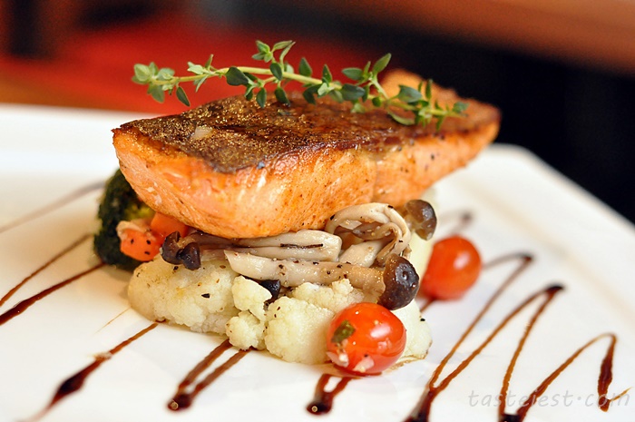 Teriyaki Fresh Salmon Trout RM40, pan fried fresh salmon trout with sauteed vegetable and mushroom. A good piece of Salmon just need simple preparation, chef nail it with just pan fried to make the crispy skin with juicy meat.