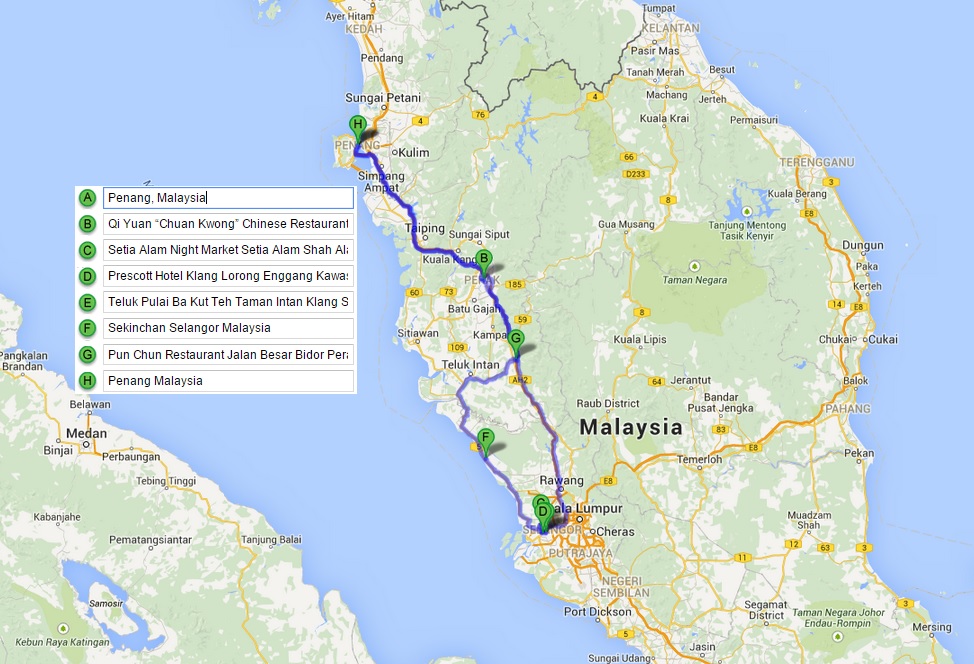 Since my seminar start at 1pm which mean we need to wake up much early at 6am in order to dine in Ipoh before going to KL. Below are the summary of our 2 days trip, it is pretty straight forward route, Penang - Ipoh - KL - Sekinchan - Bidor - Penang.