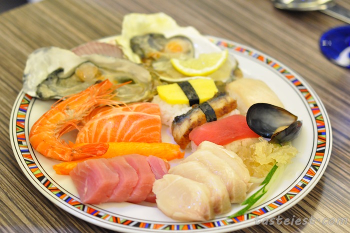 Not only that, Salmon, Tuna and other Shasimi also served. This big plate was own by Henry, who is craving for seafood.