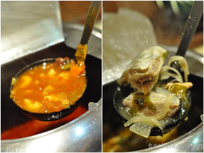 Two type of soup, Miso Soup with Salmon Head and Minestrone Soup.