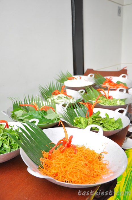 Ulam-Ulaman Tempatan (Local Salad): Ulam Raja, Ulam Pegaga, Daun Selon, Timun, Kacang Panjang, Kacang Botol, Petai, Tomato, Bendi, Kobis, Jantung Pisang, Daun Kaduk with different dressing such as Sambal Belacan Asli, Sambal Kicap Limau Kasturi, Budu & Cincaluk.