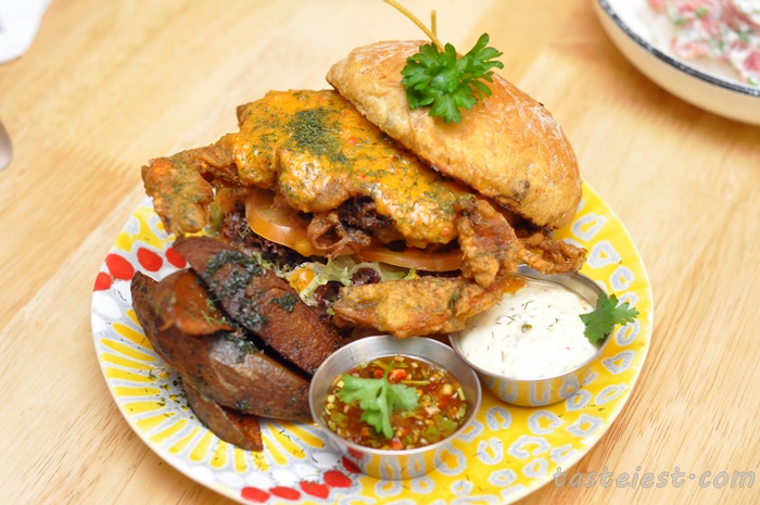 Coscia di Pollo Burger RM22, Grilled whole chicken leg seasoned with mixed herbs and topped with melt cheddar cheese, fresh tomato slices and rockets, house salad and potato fries on the side. English muffin use to replace typical burger bun which has better texture and the big size chicken leg make it so big and hard to bite, but that is what I like about burger. Burger have to be big enough to create some level of satisfaction. Sauce added in burger are slightly lack of flavor and personally i would suggest to add on some vegetable in it to create crunchy texture.