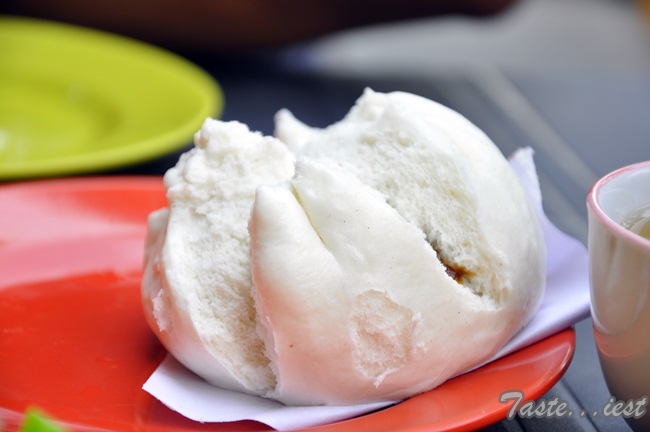 Lau Sar Pao RM6, the salted egg custard bun is leaking out from the bun immediately after we open it, taste sweet with a little bit sauteed taste.