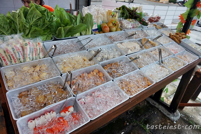 Malaysia delicacy Pasembur, you can mix and match your favorite Pasembur ingredients such as tofu, prawn cracker, egg, cucumber…etc with the spicy and sweet sauce.